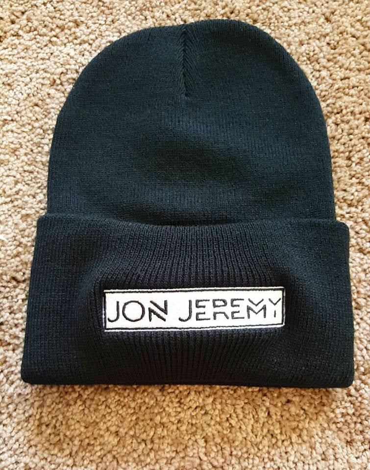 Black One Size Fits All Embroidered Jon Jeremy Cuffed Beanies